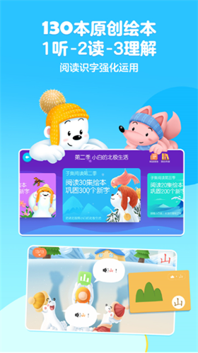 专为3-6岁儿童设计,配套130本独家原创进阶式阅读绘本持续更新,每本仅用已学汉字编故事,科学细致循序渐进,孩子自主阅读不费力!