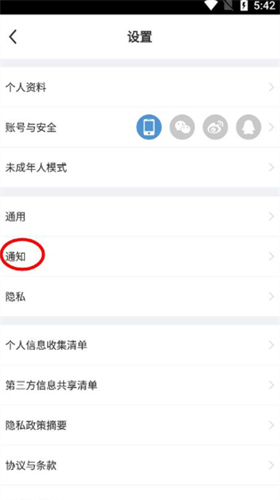 在设置中大家可以根据自己的使用习惯修改一些软件的设置,我们点击【通知】进入到通知设置。