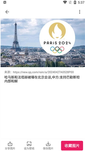 4、提供图片分享,保存,下载,设置壁纸,以及来源网页链接,不良图片举报等功能