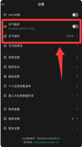 1、进入软件界面点击设置把天气服务打开就能看到今天有没有下雨。