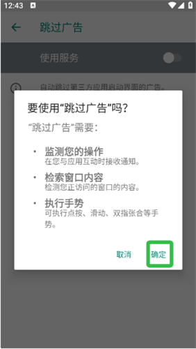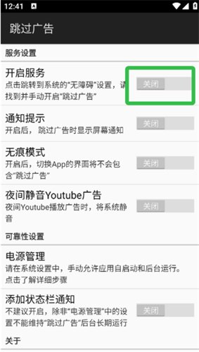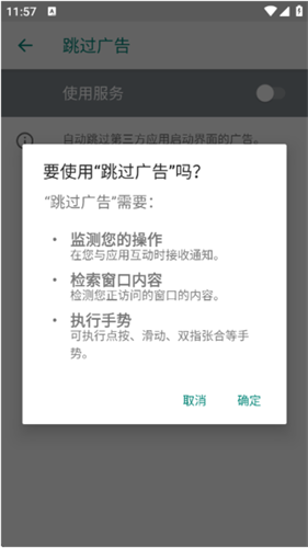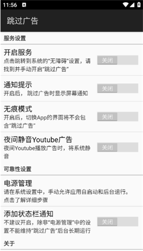 1、自动点击跳过:这是核心功能,利用无障碍服务自动检测并点击屏幕上的“跳过广告”按钮,实现无人值守的跳过。