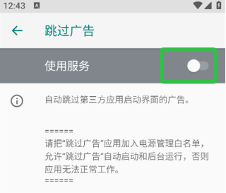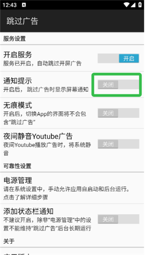 6、用户也可打开通知提示开关,在跳过广告时会进行弹窗提醒。