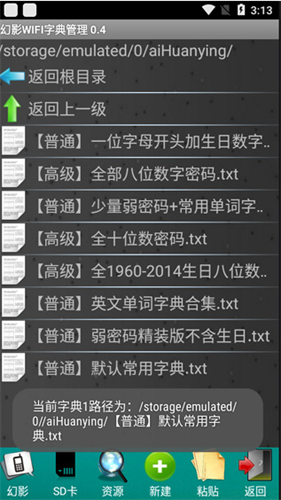 2、内置包括常用字典、全体八位数字密码字典、全体十位数字密码字典、生日字典等多样化的密码字典。