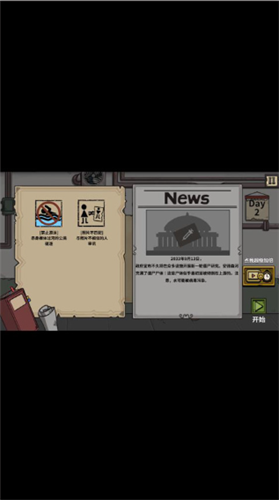 1、玩家进入游戏,首先是了解游戏背景和剧情,然后开始第一天;