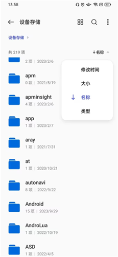 3、文件管理器可以被配置为通过名称,日期和文件大小以升序或降序对文件进行排序。