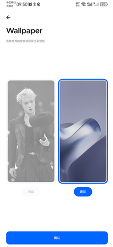 1、进入app后选择保留当前壁纸还是使用推荐的壁纸,并点击确认
