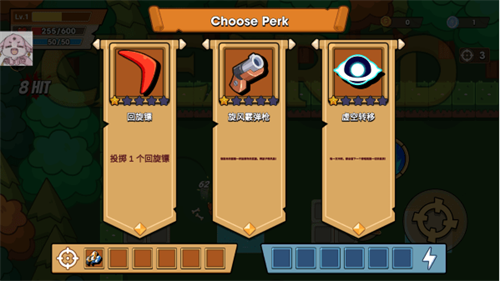 打怪会掉落经验值,升级之后可以选择你的天赋技能。