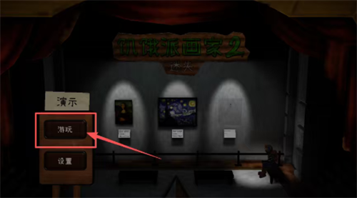 1、在游戏主菜单,看到演示、游玩、设置三个按钮,中间那个写着游玩的按钮被红框框着,还有个箭头指着,直接点游玩就能开始游戏了。