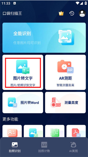 1、先打开软件,在首页挑选自己需要的功能,例如图片转文字。