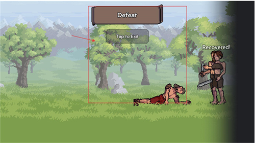 4、战斗失败后会显示Defeat界面,点击按钮可退出战斗场景,失败后可能损失资源或进入虚弱状态,需后续恢复状态后再进行战斗。