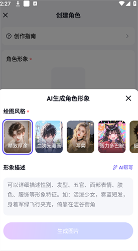2、按照提示填写角色的基本资料,并设置对应的权限信息,确认无误后,系统会自动生成该角色的专属形象。