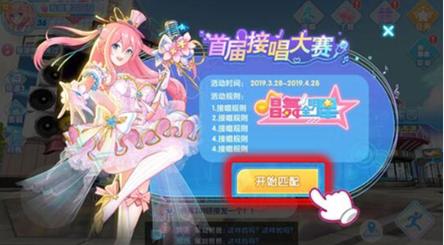 1、首先,直接在主社区选择接唱玩法,点击开始匹配系统会自动匹配小伙伴,进入接唱玩法