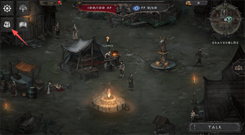 4、交谈之后,点击屏幕左上角的“背包”标识。