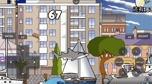 3、开始游戏,控制鲨鱼进行冒险破坏,吃人。