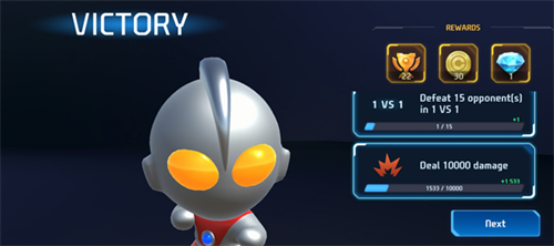 1、众多Q版奥特曼,每位都拥有独特的力量和动画,在惊心动魄的 1v1 和 3v3 战斗中与对手展开较量。