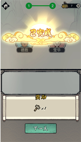 5、完成相应的关系后即可完成挑战,成功通关获得锤子奖励;