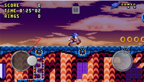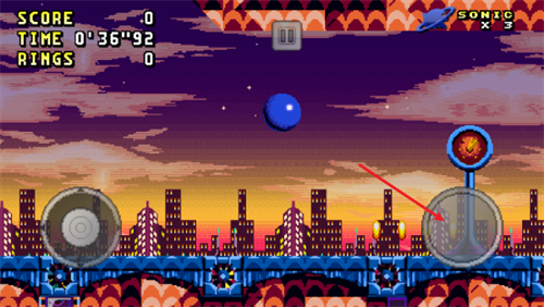 1、进入游戏后,通过左侧的摇杆控制索尼克移动。