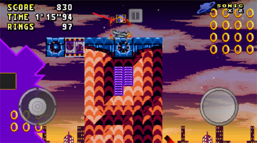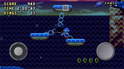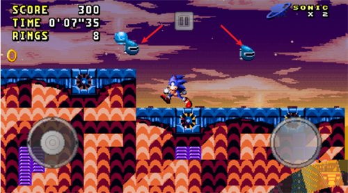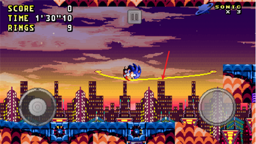 2、右侧的按钮可以控制索尼克进行跳跃,并且长按会跳的高一些。