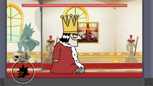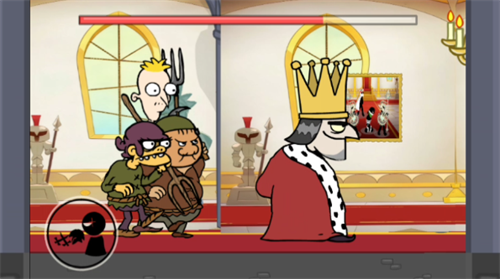 第二关,操作左边的按钮让国王下来,然后过去杀掉国王就可以了。