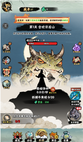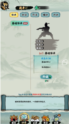 3、然后我们还可以通过下方的“功法”选项来学习体术、剑法、符法、媚功等多种功法。