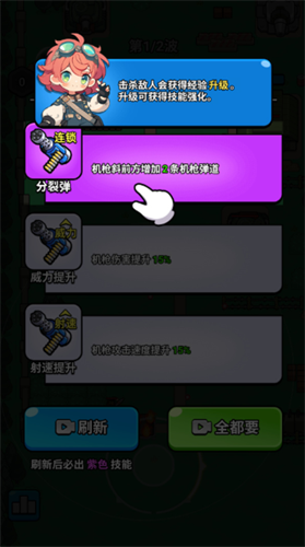 2、击败敌人后即可获得经验,当经验足够多后玩家可以升级并获得强化。