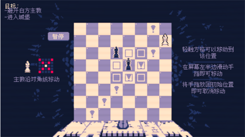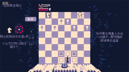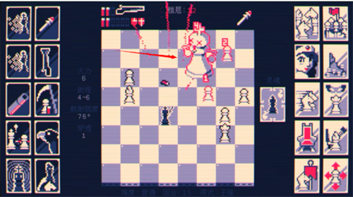 1、极简像素风格与独特氛围:游戏采用简约而精致的像素风格画面,与阴郁、神秘的整体氛围相得益彰。棋盘式布局和干脆利落的动画反馈,营造出一种独特的压迫感和紧张感,让玩家沉浸在充满挑战的战斗环境中。