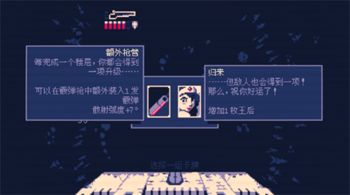 3、随机升级:在每一层结束后,你可以从两组随机的组合中选择一项升级,让你和敌方都获得一种增益效果。做出明智的选择,突破更多的楼层,争取夺回你的王国。