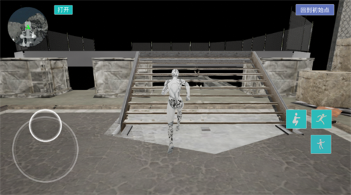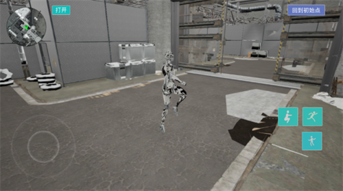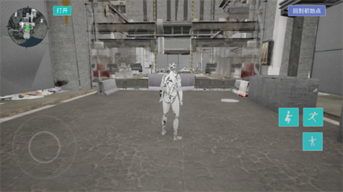 3、左下角的摇杆控制角色移动,右下角的按键为蹲、跑、跳;