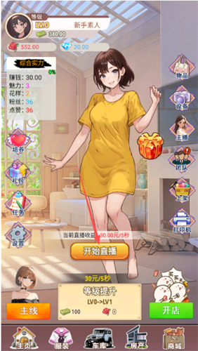 1、玩家在游戏中将化身女主播,个人魅力和花样越多,粉丝和点赞数量越高。