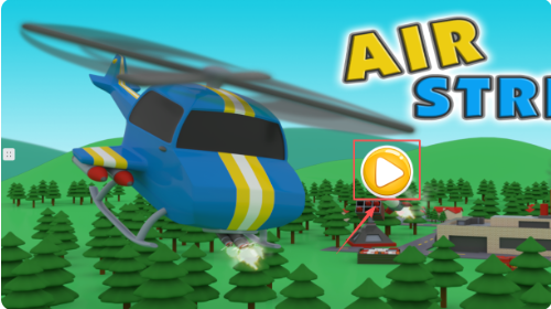 1、首先进入游戏,注意起始界面有黄色播放按钮,点击即可开始。直升机下方是森林和山丘,画面左上角有菜单图标。