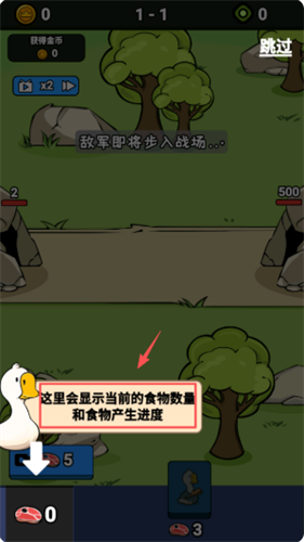 这是一款轻松上头的放置养成类对战游戏——你将操控萌萌的“战斗鹅”,在森林战场开启闯关之旅!开局带着基础战力的鹅鹅站场,通过收集战场掉落的资源(比如左下角的肉块),就能解锁更强力的鹅型单位、升级武器;左右洞穴会刷新不同强度的敌人,你的目标是让鹅鹅的“战斗力滚雪球式暴涨”,从初期的小打小闹,一路碾压到“顺利通关”!游戏节奏轻快,单手就能操作,看着鹅鹅从弱到强、轻松横扫关卡,解压又有成就感~