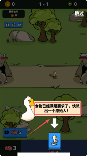 3、在游戏过程中,要时刻关注屏幕下方显示的食物数量,确保资源充足,这样当提示食物满足时,你才能派遣原始人角色。