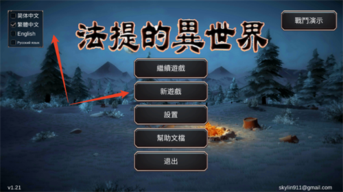 1、进入游戏会看到如下界面,左上角可以调城简体中文,然后点击新游戏,之后可以点击继续游戏直接读取存档。