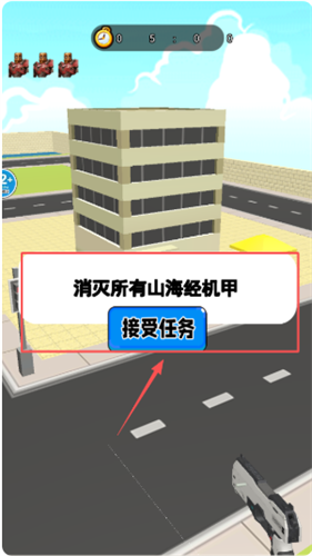 3、在任务界面,你会看到“消灭所有山海经机甲”的目标。只需点击目标下方那个被醒目框出的蓝色“接受任务”按钮,就可以正式开局了。