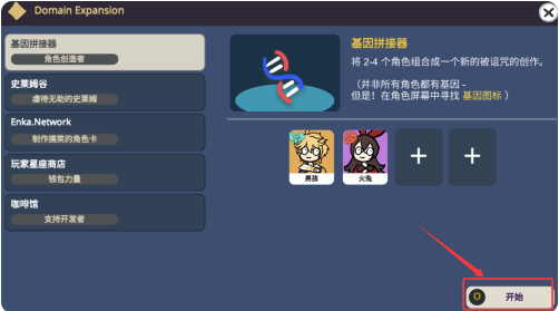 1、点击开始按钮,进入基因拼接器创造角色。