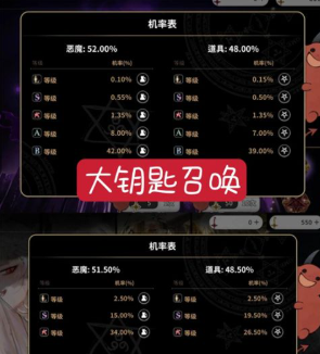 4、抽卡系统:大钥匙和小钥匙的区别