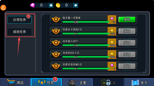 2、完成日常与成就任务是获取资源的好方法,你可以去任务界面,比如选择“日常任务”,完成登录、闯关或击杀等目标。