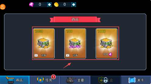 3、资源不够的话就去商店逛逛,那里有标价不同的卡片道具,通过“观看”等方式可以获取,记得顶部会显示你的钻石与金币数量。