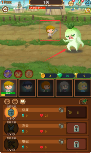 1、游戏中的角色将会自动进行各类动作,包括战斗、探险和收集资源,你只需要轻松点点,升级角色即可。