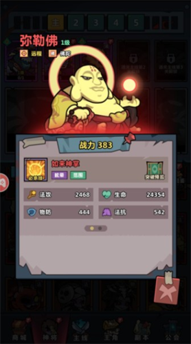 斗战胜佛:暴击伤害极高的近战物理型神将,必杀技大闹天宫旋转形成风暴5秒,对途径的敌人每秒造成2次50%攻击力的中小范围伤害,期间自身无敌且不可选中。