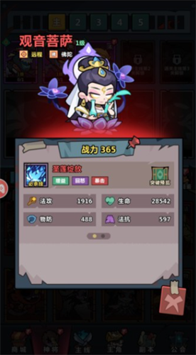 观音菩萨(可替换斗战胜佛):具有暴击的远程法术型神将,可以高效率的给队友回复怒气,必杀技圣莲绽放对最近的敌人造成120%攻击力的中范围伤害并使我方神将在8秒内暴击+30%。