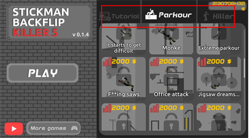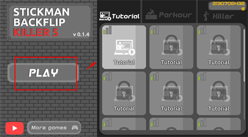 1、下载并安装本站提供的火柴人后空翻5,打开进入游戏点击左边“PLAY”按钮,选择右边选择模式。