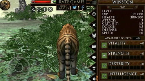 通过捕捉和吃掉你的猎物,逃离捕食者,照顾你的家人,完成任务来获得经验!提升你的动物等级以增加它们的健康和攻击伤害,获得点数以提升你的属性,并增加你的背包大小!