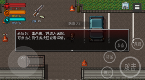 3、进入游戏,我们的第一个的任务是顺利进入医院,并将路上遇到的丧尸杀掉。