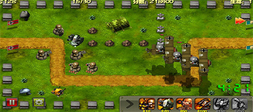 4、用于抵抗源源不断的敌人。你可以使用六种可以不断升级的炮塔,完成多达15关的防御。