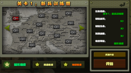 2、选择关卡以及难度进入游戏。
