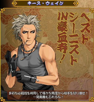 凯斯是以自我为中心并骄傲自满的人。他是个易被误解的青年,曾经组织过帮派。但他爸强大无比的父爱使他被迫脱离帮派。他仅有的好友是帮派的头头(他仍然偶尔和这个朋友出去闲逛)。他的母亲伊丽莎白(不是先祖供养那个Elizabeth)在凯斯还是小孩的时候就离家出走了,所以他几乎不记得母亲的模样。凯斯有一个习惯,他喜欢调戏美女,这也是他总去参加豪血寺家族格斗大赛的原因。在那里,他找到了他的一生挚爱:安妮·哈密尔顿。
