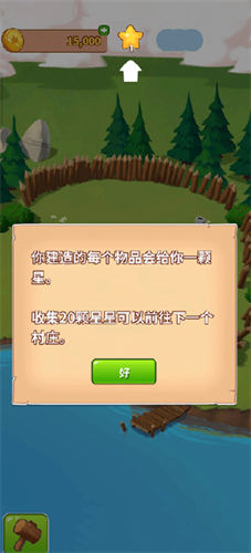 3、你每建造一个物品都会星星,收集满20颗星星就可以前往下一个村庄;