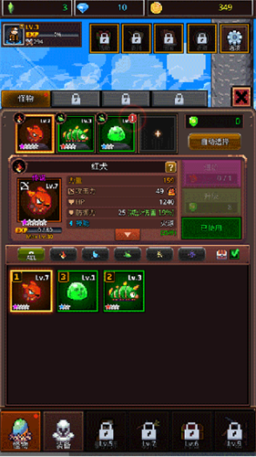 6、捕获到的怪物在怪物界面中可以查看到,你可以在捕获的怪物中挑选喜欢的怪物并加入你的队伍和你一起去战斗其他怪物