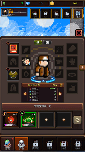 7、挑战关卡会掉落很多道具和装备,玩家将装备穿戴在角色身上后可以提高战斗力